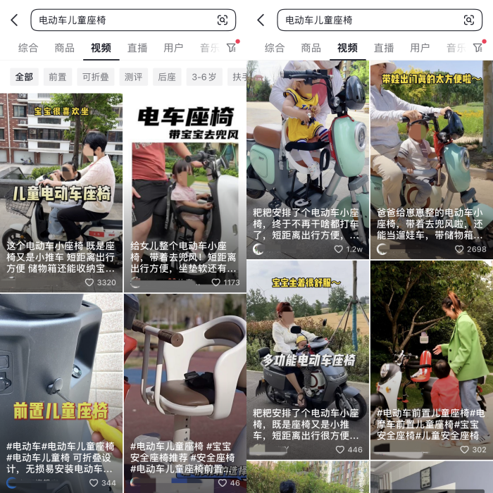 在店鋪人群上,火蝠電商通過店鋪后臺和市場分析發現,女性是兒童陪伴的主導者,也是安全座椅的核心購買者,基于這樣的數據,火蝠把目標人群鎖定在一二線90后新手年輕媽媽上,她們受過高等教育,對兒童安全方面有著更高程度的認知,購買動機更高。在消費能力上,她們對價格不敏感,愿意為更安全,更方便,顏值更高的產品買單,更愿意為精致育兒消費。定位好人群之后,通過「買家秀」、「問大家」等一些端口,為用戶制造「接娃放學」、「帶娃買菜」的消費場景,進行內容“種草”。