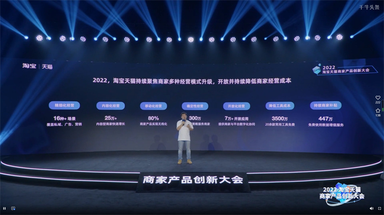 會上,千牛10.0全新發布,千牛負責人曉穆對全新千牛產品進行了全面解析,商家經營將享受更加智能高效、更加數字化的服務,千牛10.0也將通過更大幅度的降本增效為商家運營構建先進生產力。