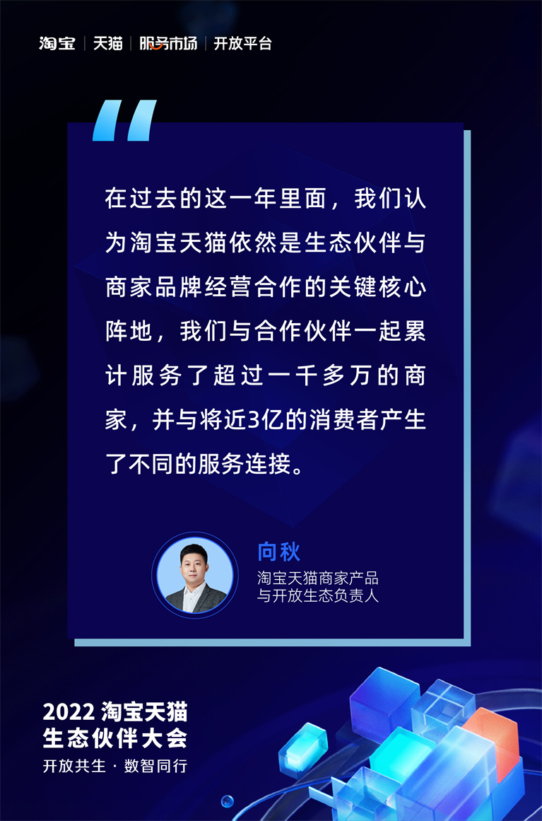 12月28日,2022淘寶天貓商家產品創新與生態伙伴大會以“開放共生·數智同行”為主題召開了線上直播大會。大會面向商家與生態伙伴,通過回望過去一年的合作成果,傳遞了平臺新的產品業務升級方向,共同展望了未來新的業務賽道與合作方向,并發布了2022電商優秀合作伙伴“淘拍檔”獎項。