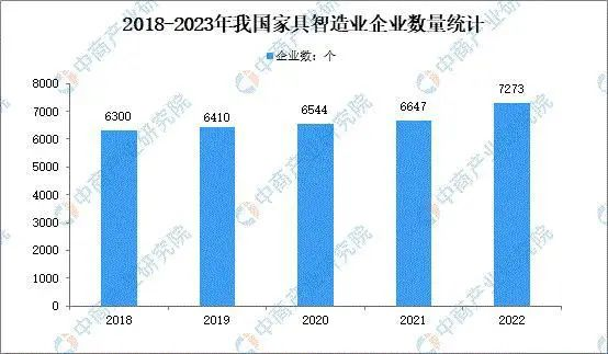 數(shù)據(jù)顯示,2022年家具制造業(yè)企業(yè)數(shù)量達(dá)7273個,同比增長9.42%,較去年增長了626家。